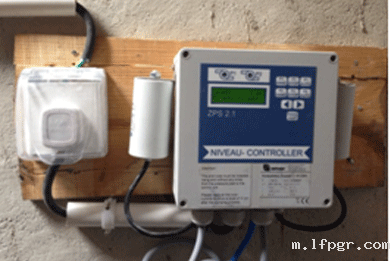 上图中,左边的图,是产品控制器安装图片。可以看出控制器尺寸非常小巧,有液晶显示屏。可以数字显示液位高度、运行时间、故障代码,并且控制器上的按钮可以调节两泵的交替时间、启动水位等。